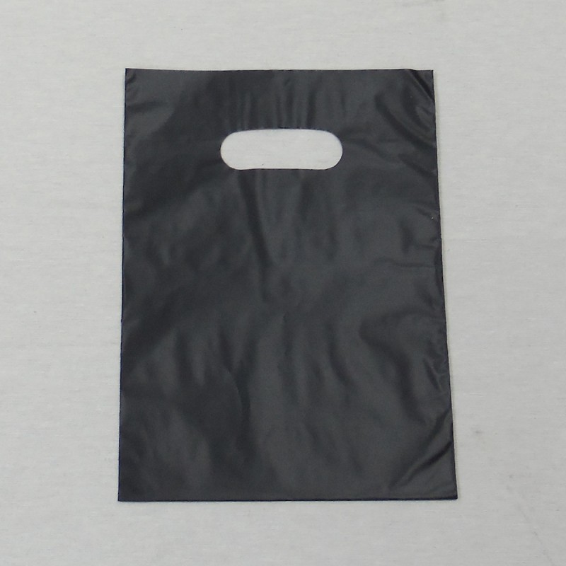 La bolsa de plástico es completamente recta en sus lados y dispone de un asa troquelada. Los bordes son lisos y están termosellados.