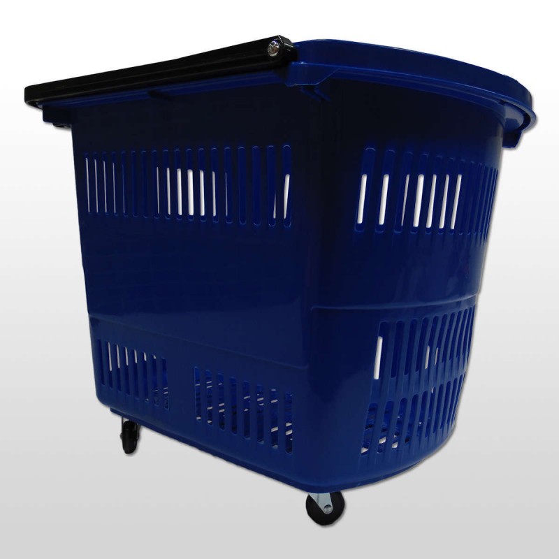 Cesta de compra para supermercado amplia, robusta y muy resistente. Cuenta con cuatro ruedas para poder transportar cómodamente la carga. Color azul.