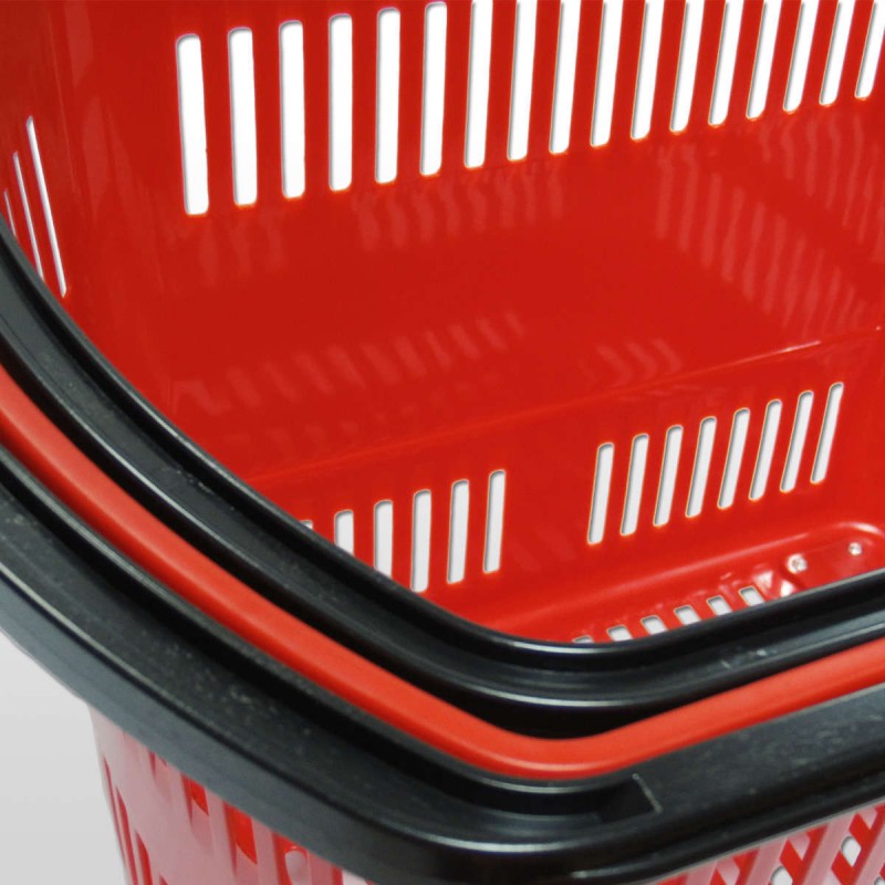 Cesta de compra para supermercado amplia, robusta y muy resistente. Cuenta con cuatro ruedas para poder transportar cómodamente la carga. Color rojo.