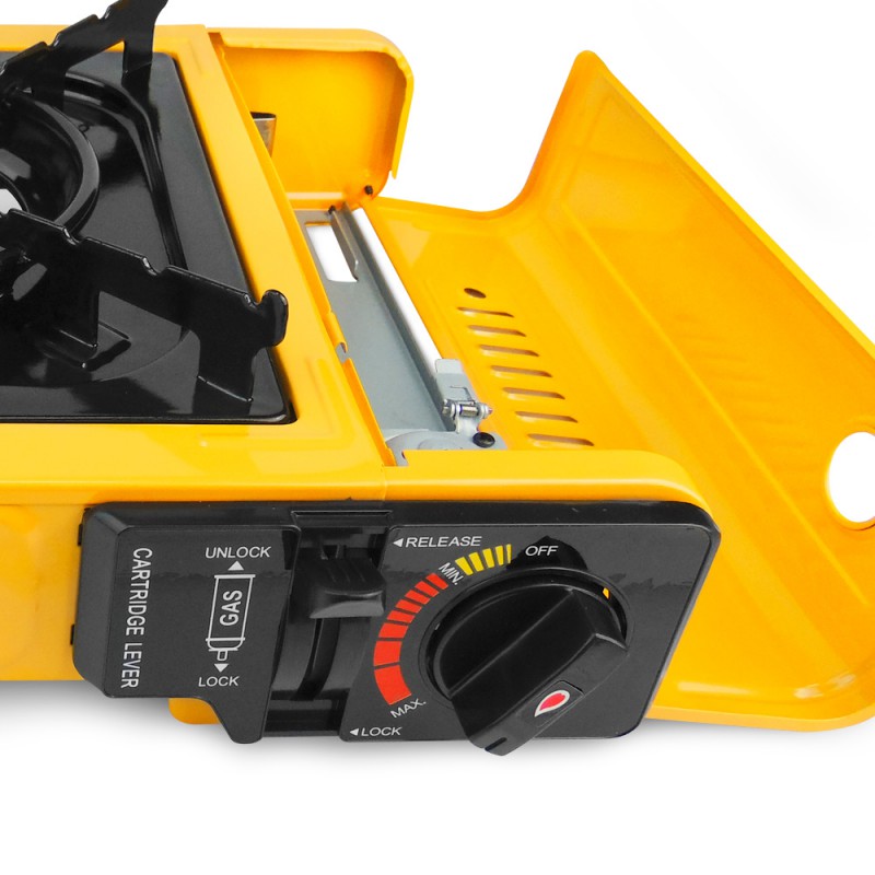 Cocina portatil de cartucho de gas con maletín de transporte.
