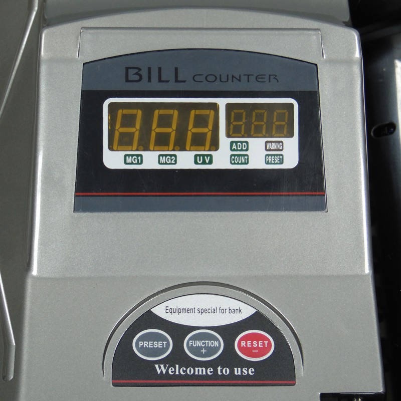 Contadora de billetes robusta y profesional. Permite contar hasta 900 billetes por minuto.