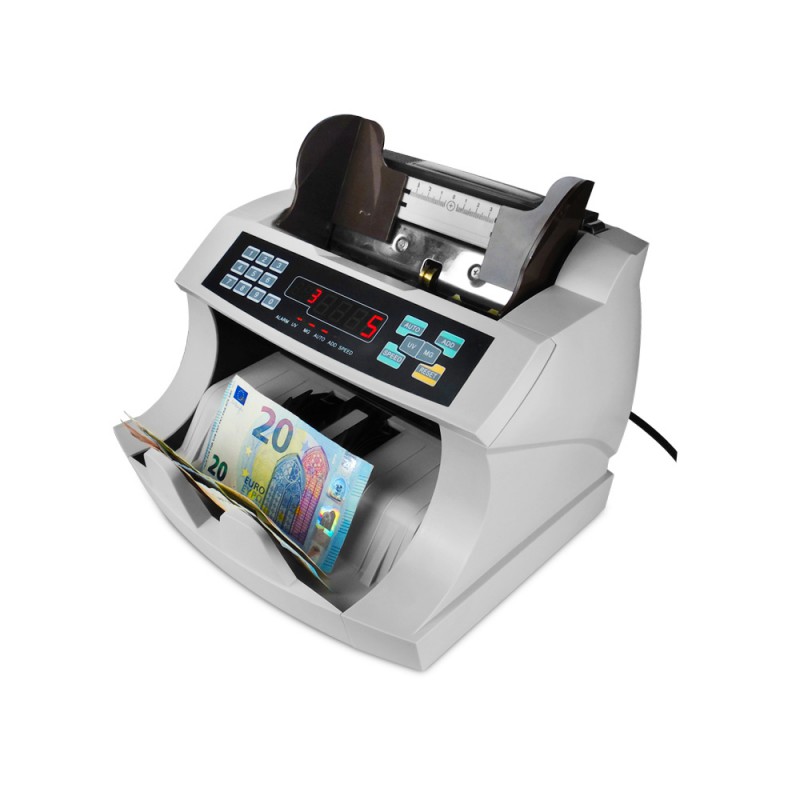 La contora y detectora es muy robusta y profesional. Permite contar hasta 900 billetes por minuto. Divisa EURO.