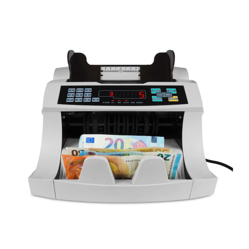 La contadora cuenta el número de billetes, pero NO distingue el valor de cada uno, por lo que está especialmente indicada para el conteo/detección de fajos.