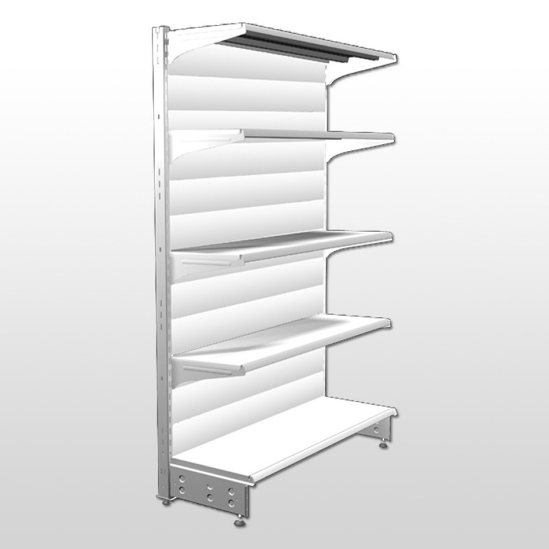 La estantería para comercio con panel liso trasero está basada en nuestra estantería sencilla, pero presenta un panelado trasero. Este panelado evita que los productos puedan caer por la parte de atrás y ofrecen un aspecto más elegante.