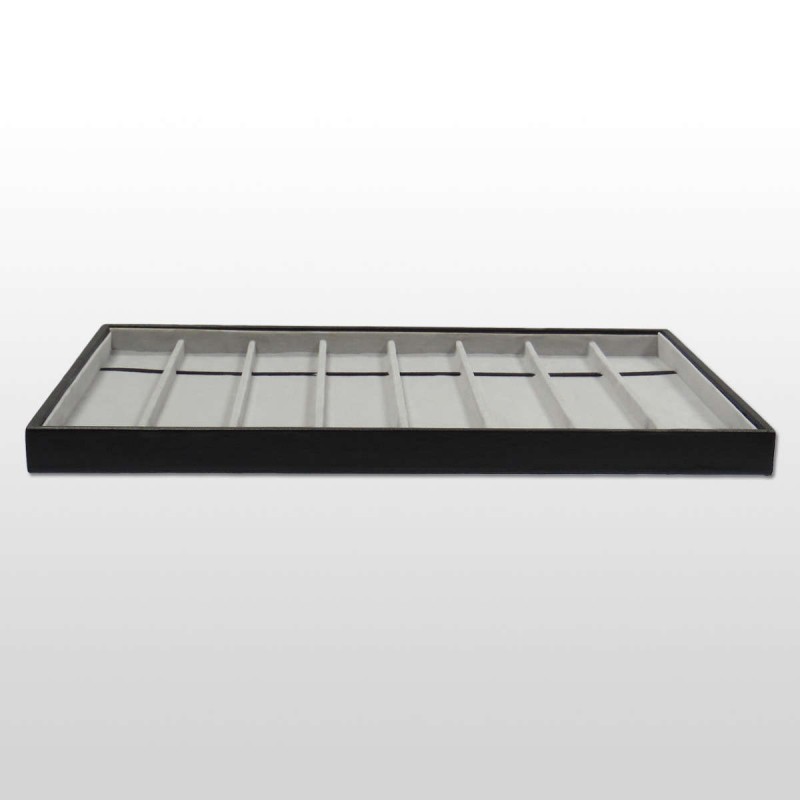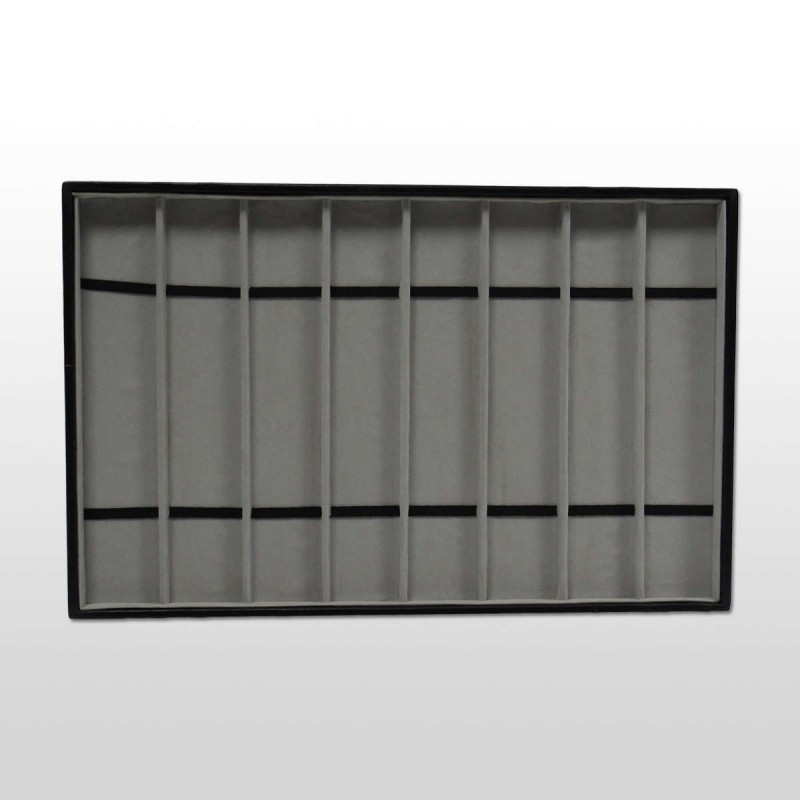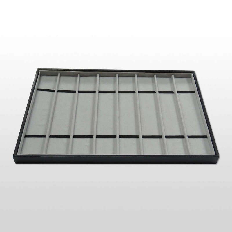 Bandeja expositora para 8 relojes. Forrada en terciopelo gris.