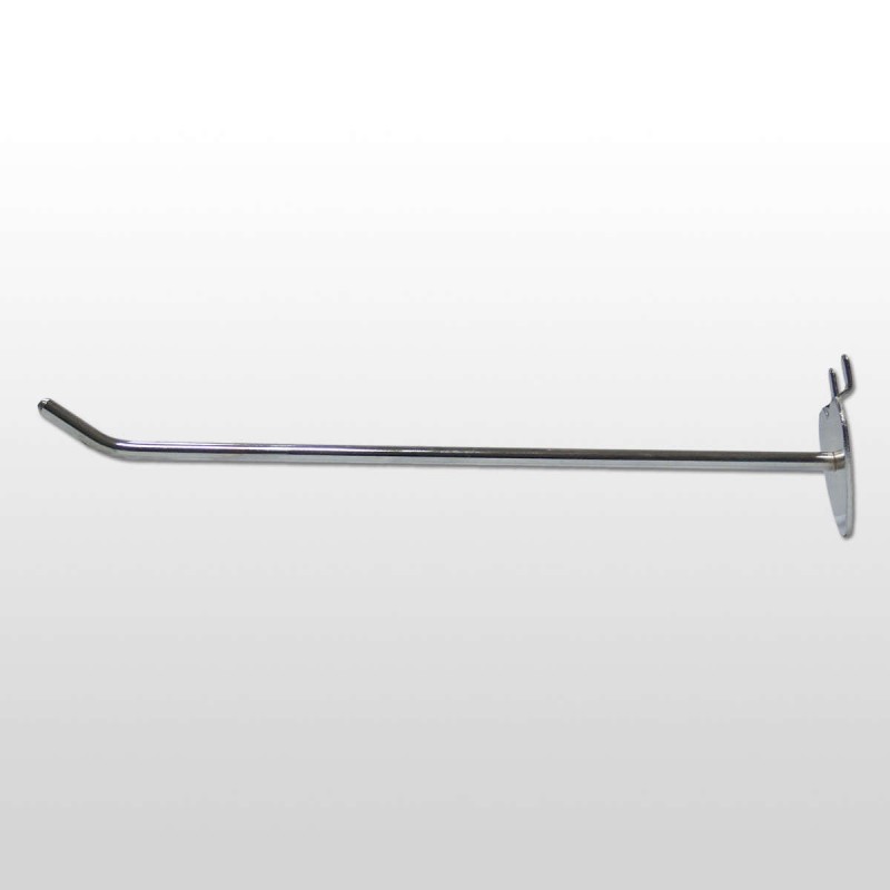 Gancho para panel perforado de 30 cm de longitud y 6 mm de grosor. Hierro cromado.