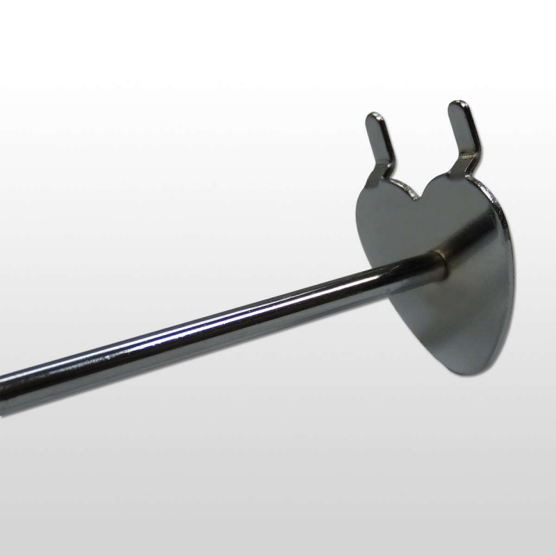 Nuestros ganchos para panel perforado están fabricados en hierro cromado y encajan perfectamente en cualquier panel perforado con orificios de 5 mm y una separación entre ellos de 25 mm.