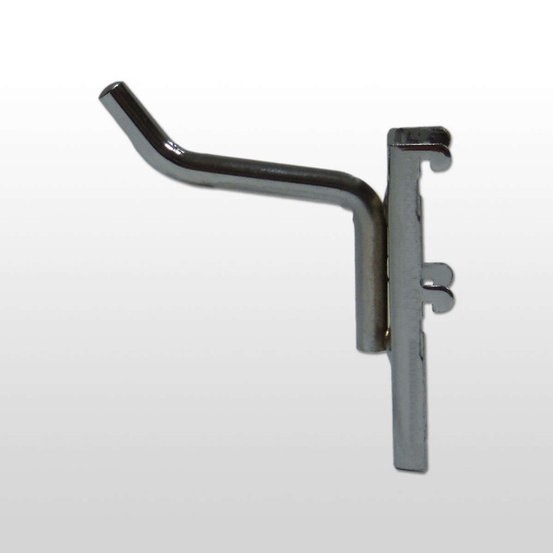 Gancho para panel perforado de 5 cm de largo y 6 mm de grosor. Hierro cromado.