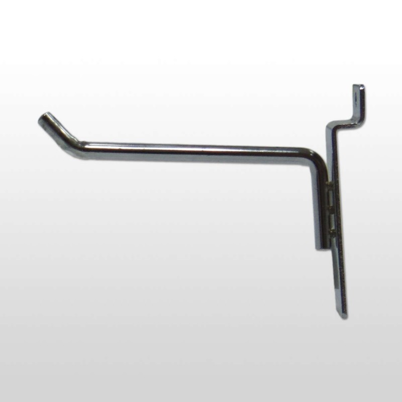 Gancho para tablero de 10 cm de largo y 6 mm de grosor. Hierro cromado.