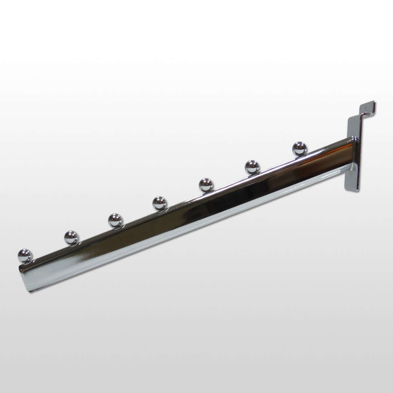 Gancho para tablero grueso inclinado con 7 bolas y 35 cm de longitud. Hierro cromado.