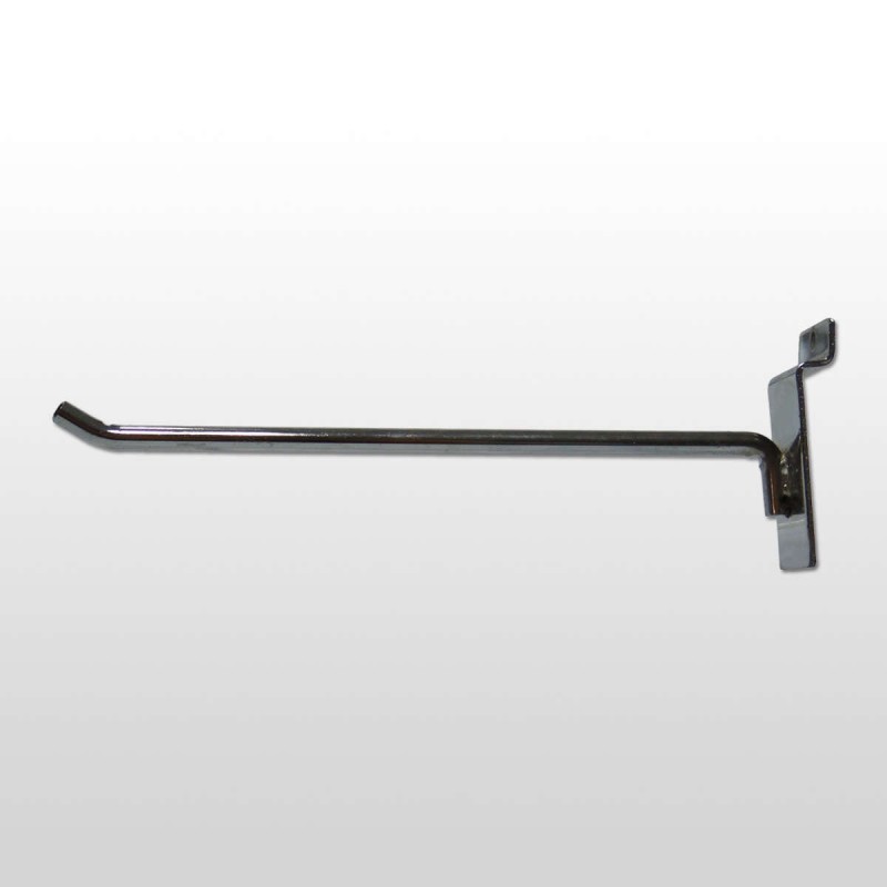 Gancho para tablero de 25 cm de largo y 9 mm de grosor. Hierro cromado.
