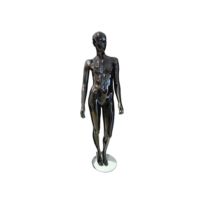 Maniquí de mujer fabricado en fibra de vidrio y recubierto con pintura de polipropileno negra.