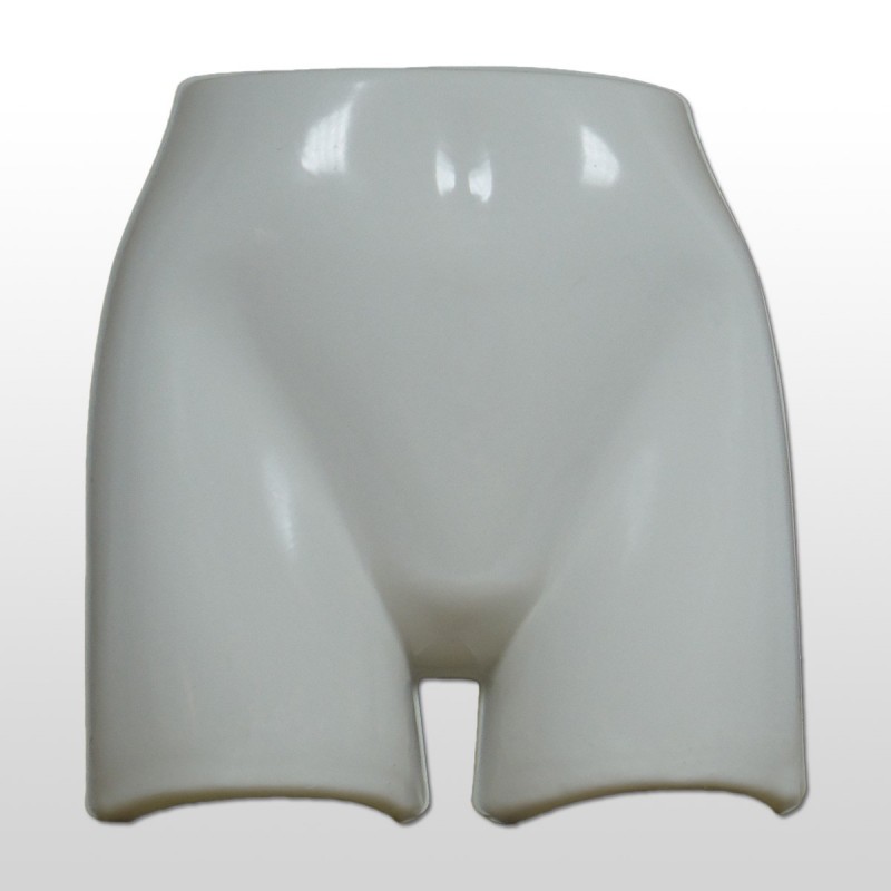 Maniquí laminado de caderas de mujer fabricado en PVC de color blanco.