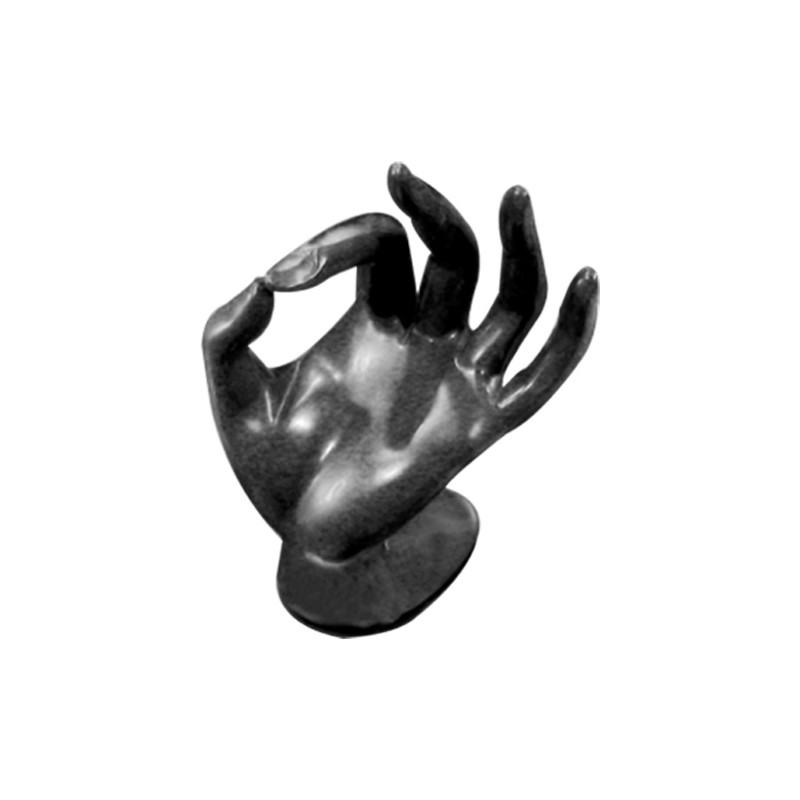 Los dedos de la mano están lo suficientemente separados entre sí como para insertar casi cualquier anillo, e incluso algún tipo de pulsera. La base es amplia y pesada, lo que evita que se caiga con facilidad.