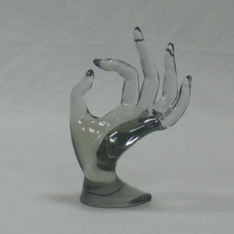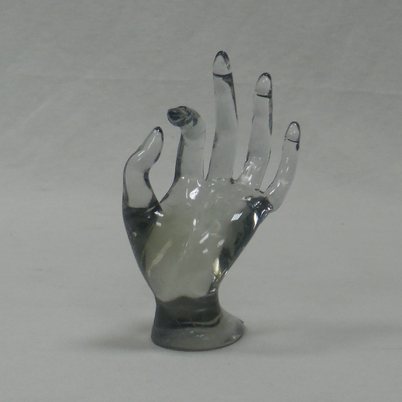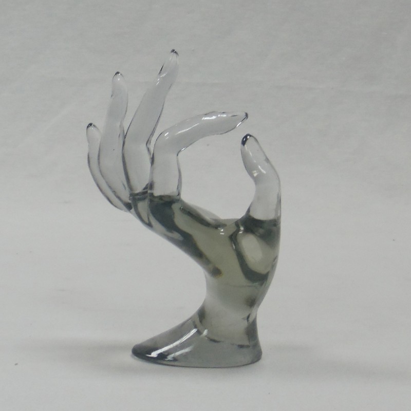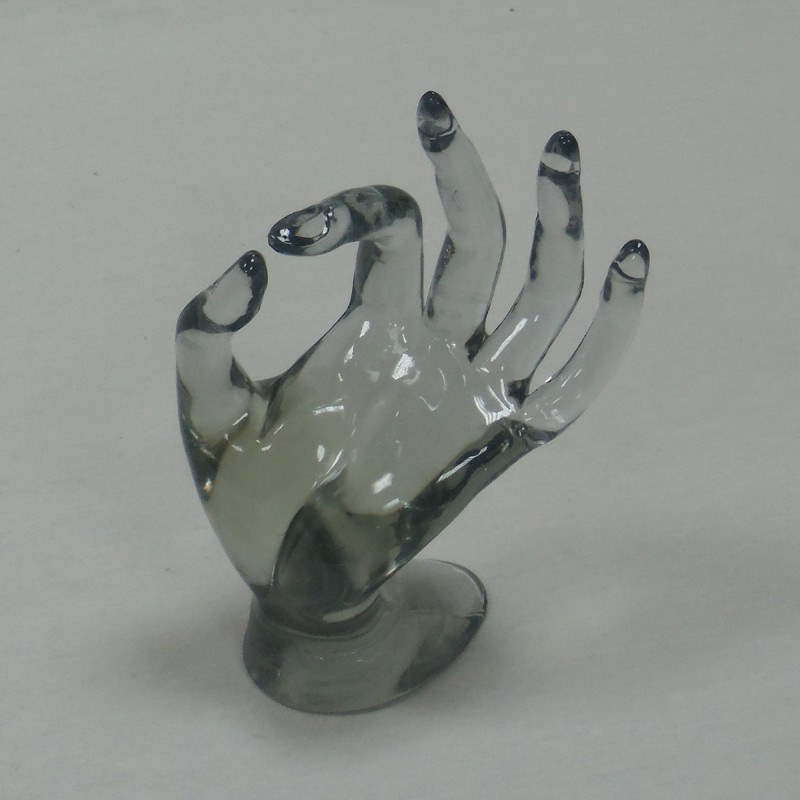 Maniquí de mano para exponer anillos. Transparente.