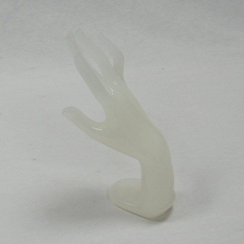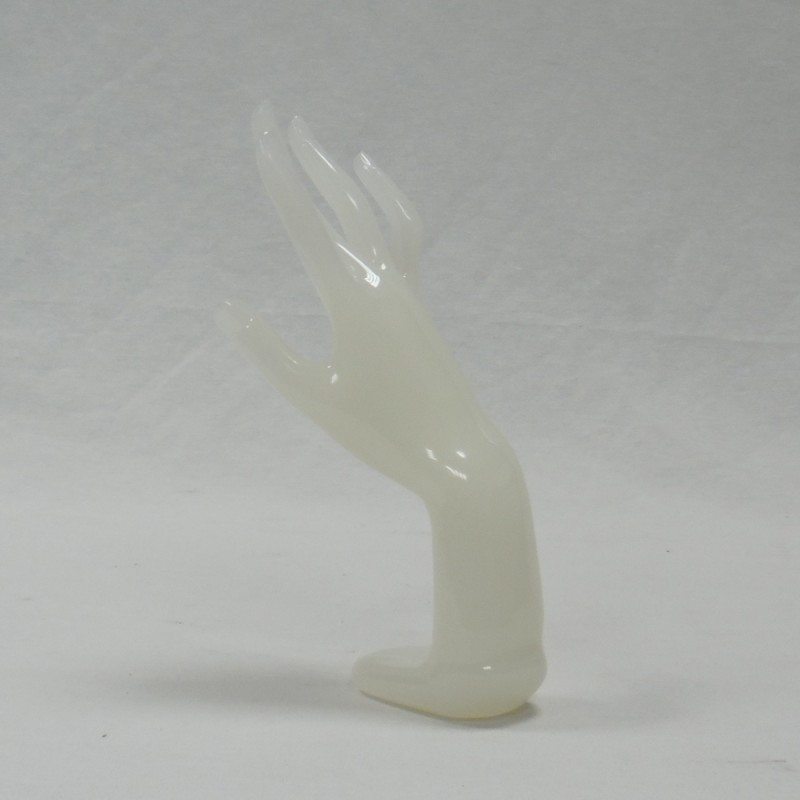 Maniquí de mano ideal para exponer anillos. Color blanco traslúcido.