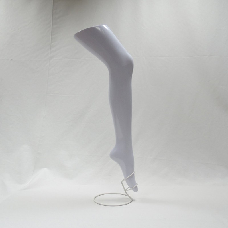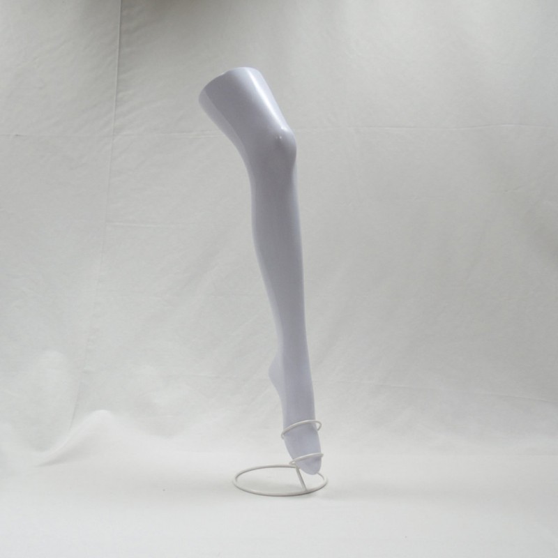 Maniquí de pierna en color blanco, especialmente diseñado para la exposición de medias o calcetines.