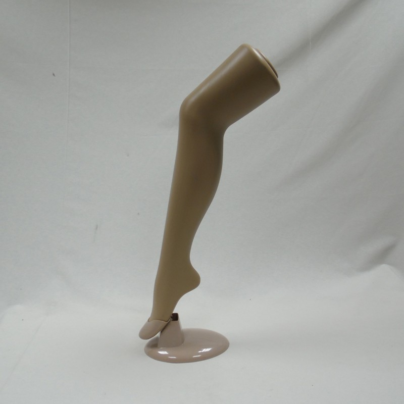 Maniquí de pierna de mujer especialmente pensado para la exposición de medias y calcetines altos. Dispone de un orificio superior para poder recoger el restante de la prenda expuesta.