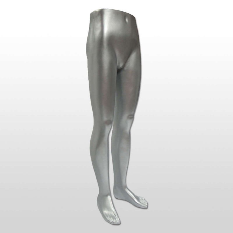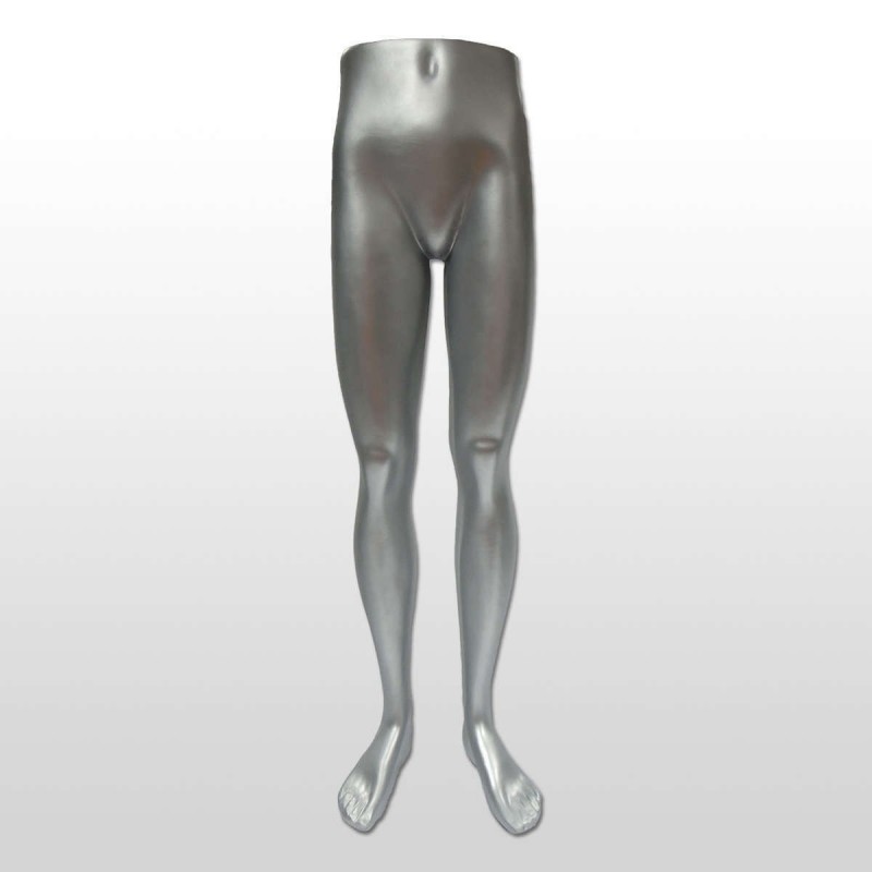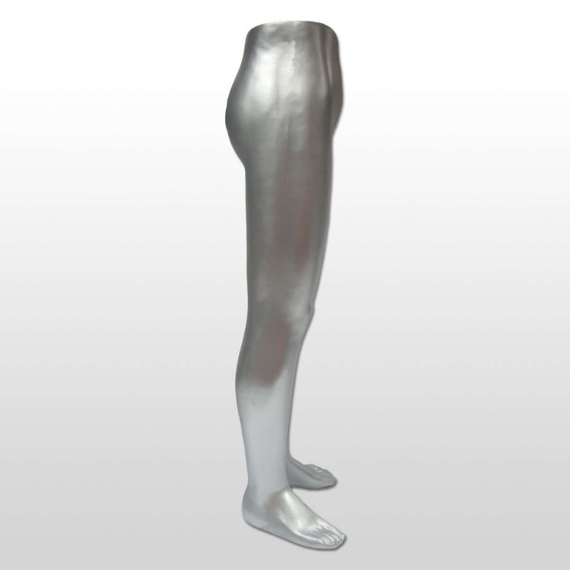 Maniquí de piernas de hombre fabricado en fibra de vidrio y recubierto con pintura de polipropileno color plata.