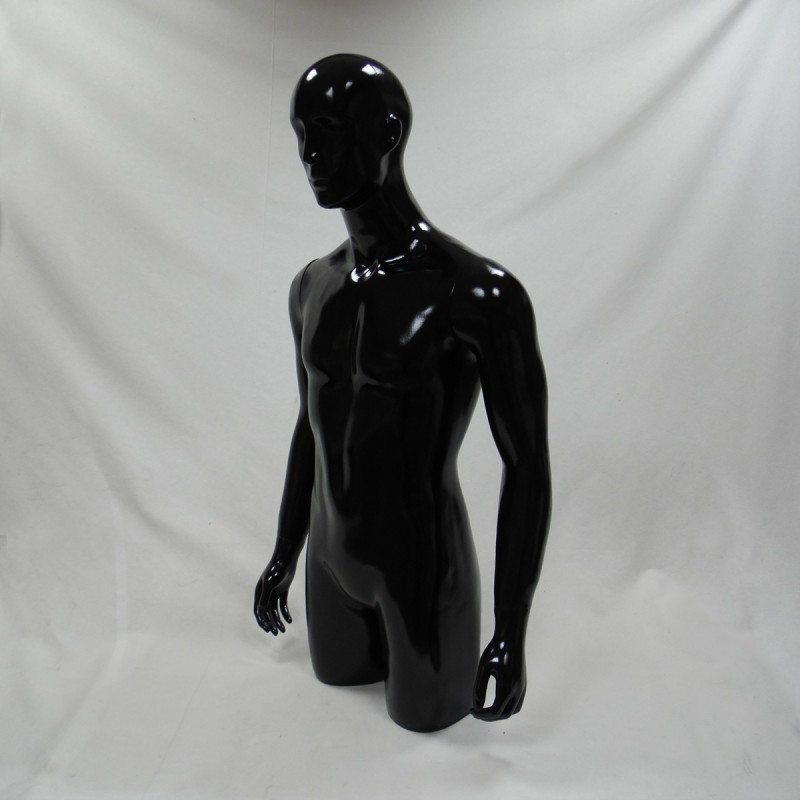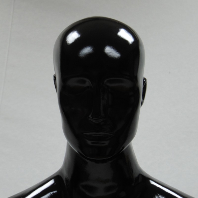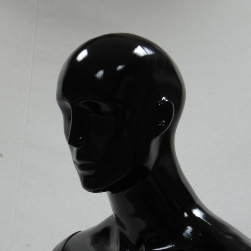 Busto de hombre fabricado en fibra de vidrio y recubierto con pintura de polipropileno en color negro brillo.