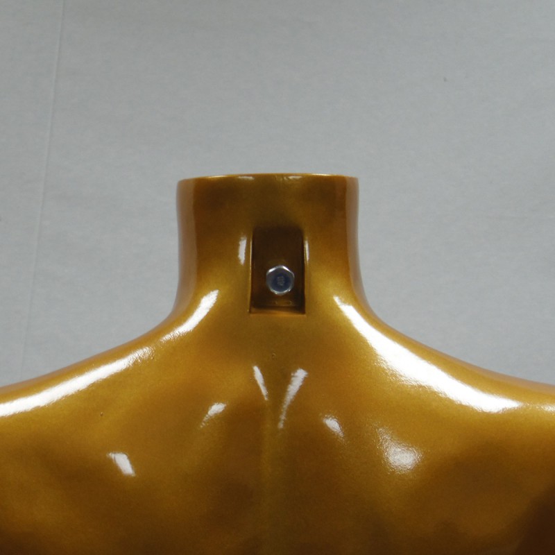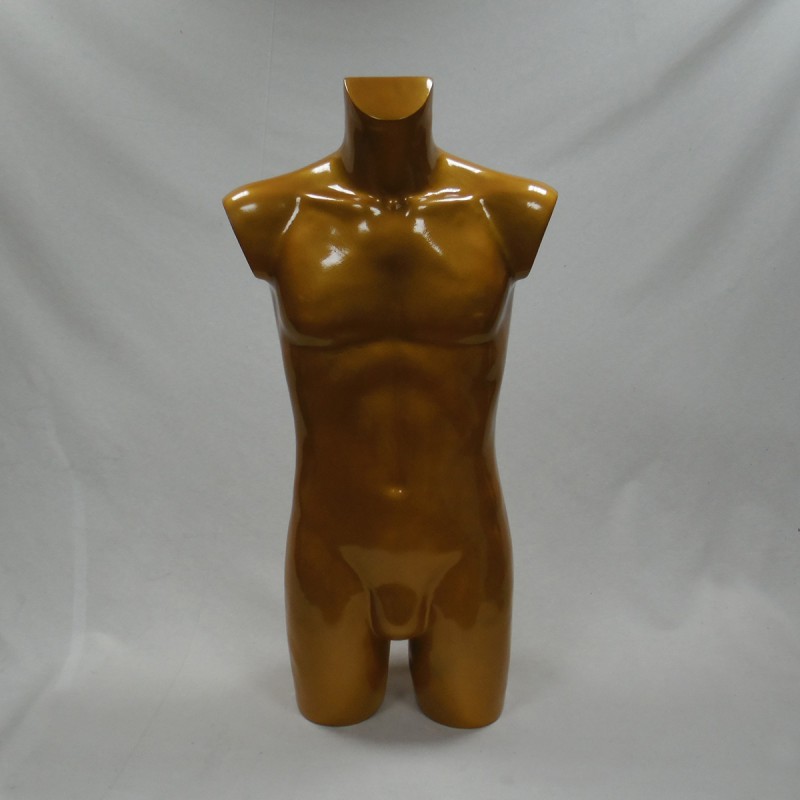 Busto de hombre fabricado en fibra de vidrio y recubierto con pintura de polipropileno en color dorado/anaranjado.