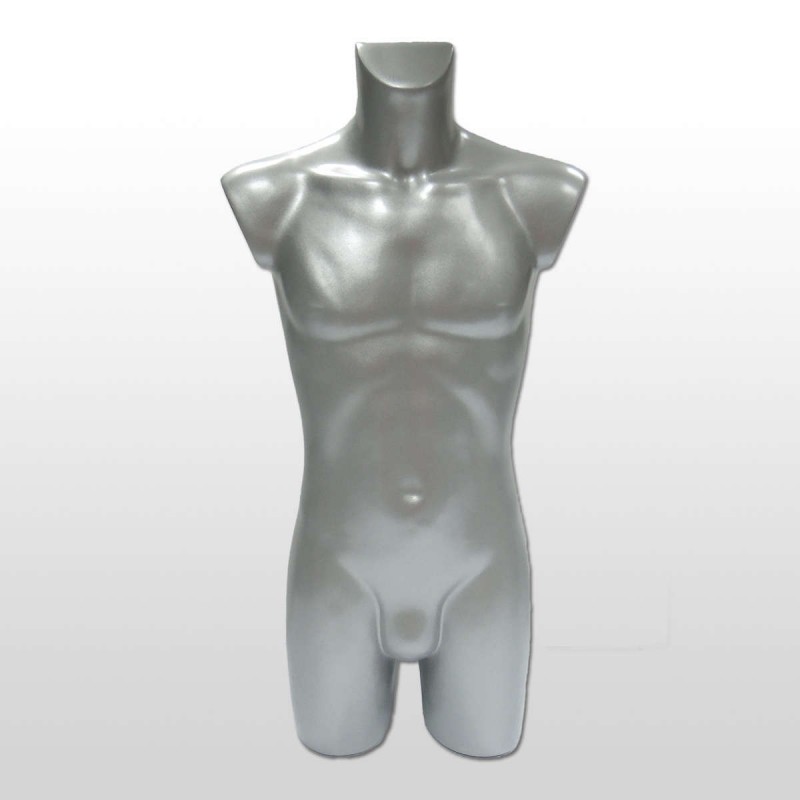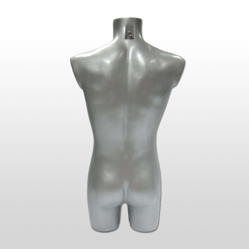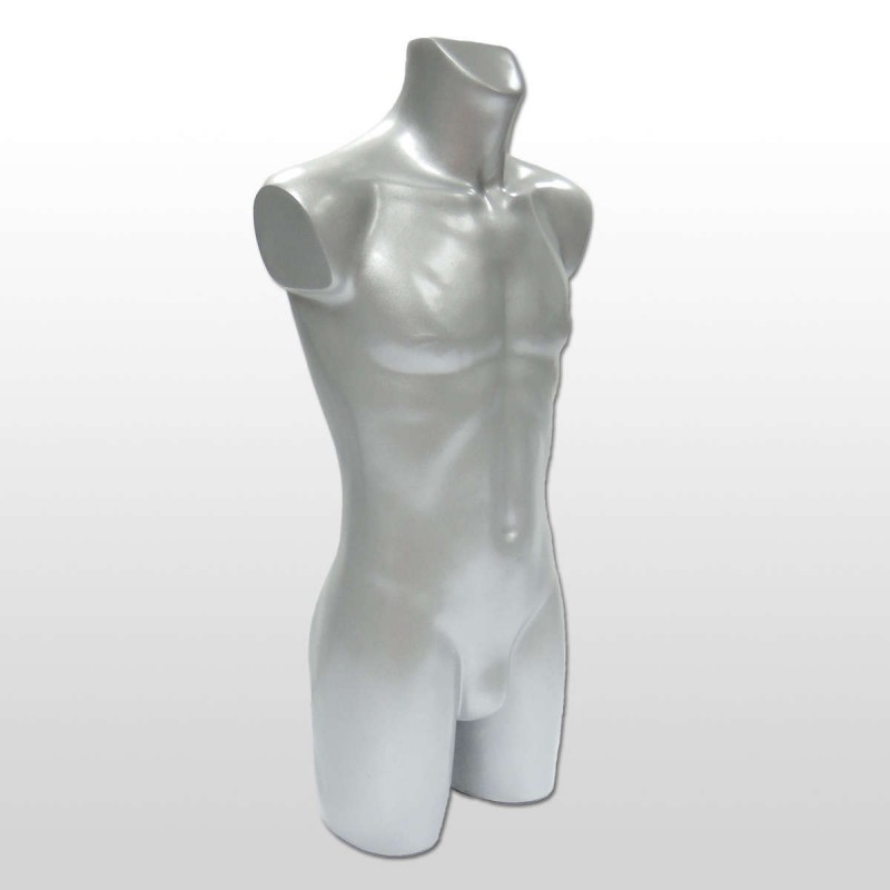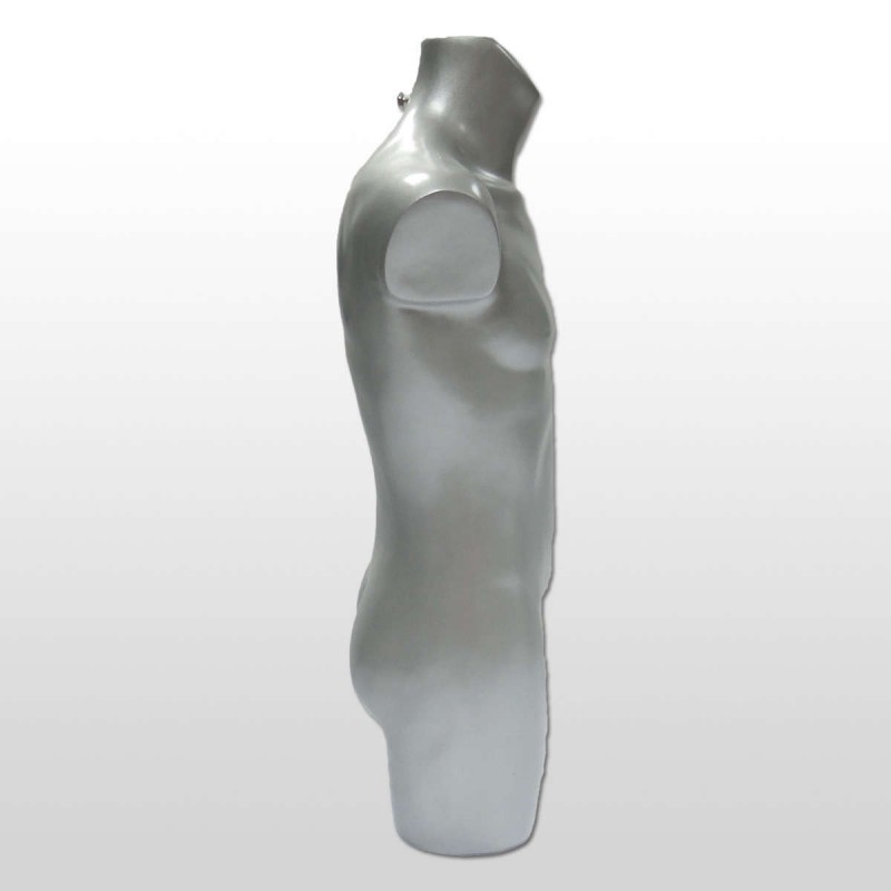 Busto de hombre fabricado en fibra de vidrio y recubierto con pintura de polipropileno en color plata.