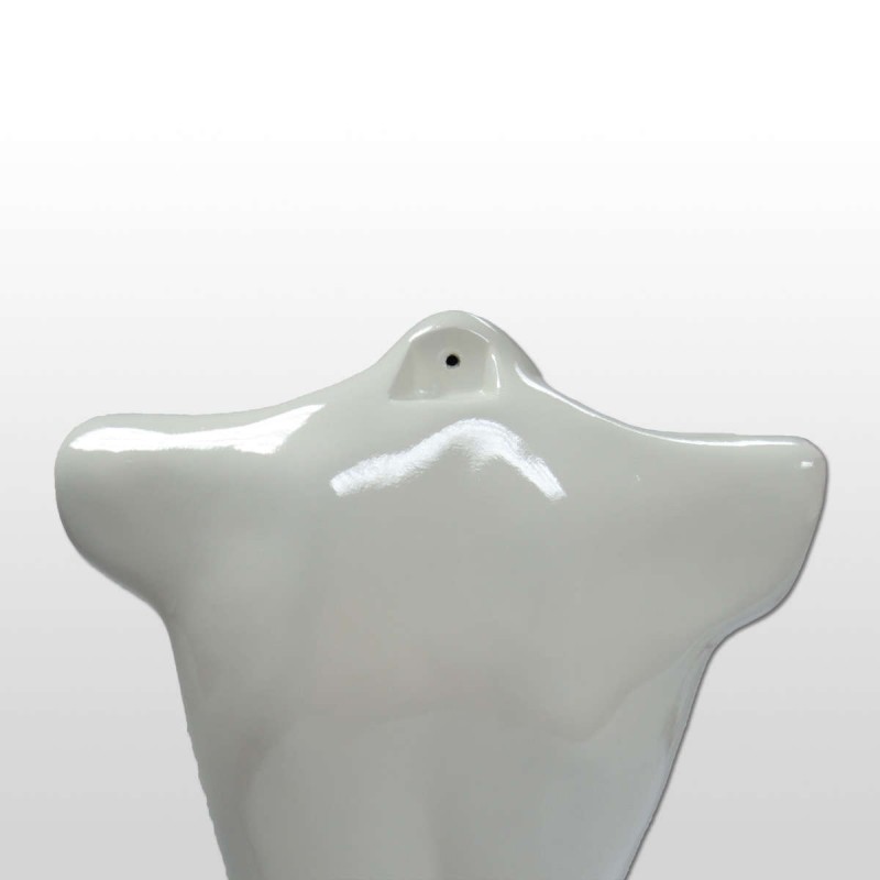 Busto de mujer fabricado en fibra de vidrio y recubierto con pintura de polipropileno en color blanco brillo.