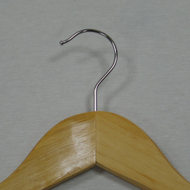 Esta percha está completamente fabricada en madera, salvo el gancho superior, que es de metal. Cuenta con una guía para pantalones.