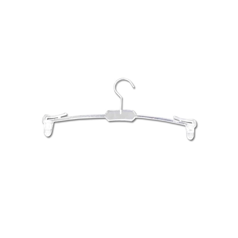 Percha especialmente pensada para presentar lencería. Está fabricada en plástico transparente y cuenta con pinzas en los extremos.